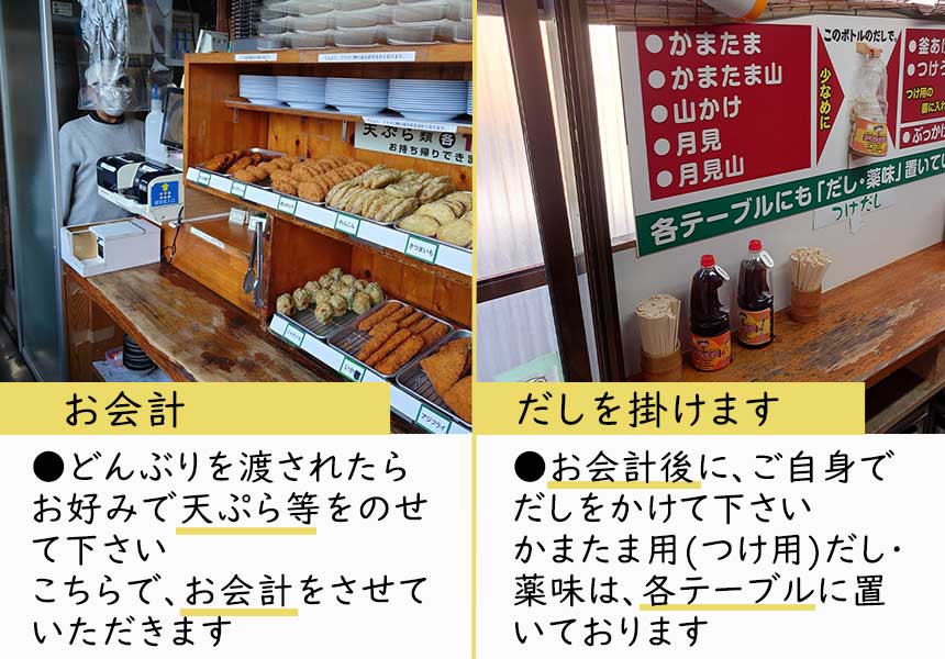 (うどん、天ぷら等、価格変更がございます。2017年撮影)